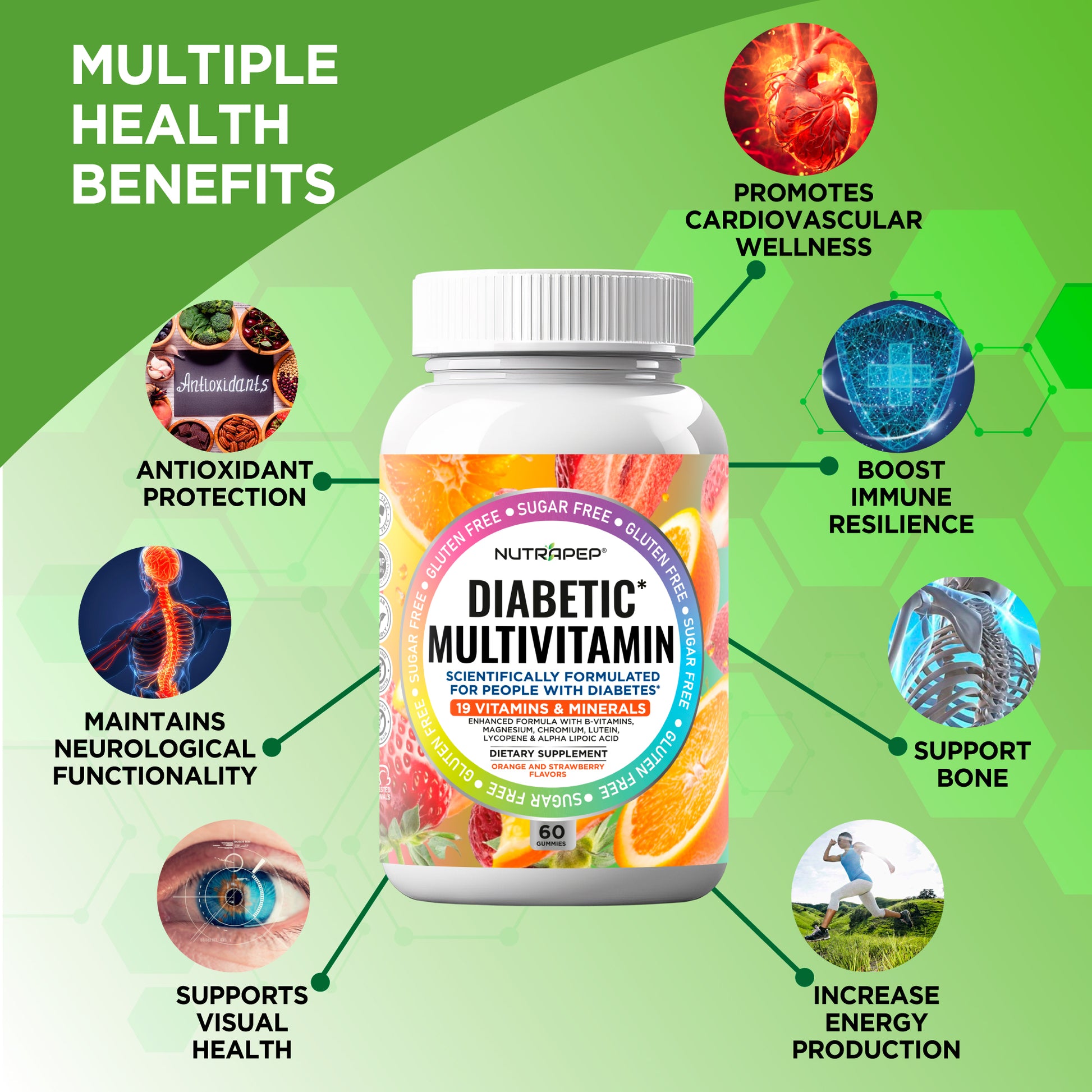NutraPep Multivitamin Gummies are specially crafted to be sugar-free, making them an ideal choice for those managing diabetes. Their delicious, gluten-free formula provides daily nutritional support without compromising your dietary needs or blood sugar levels.